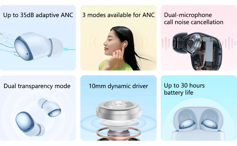 • Descripción del producto:Xiaomi Redmi Buds 4 Auriculares inalámbricos TWS Auriculares intrauditivos híbridos con cancelación activa del ruido y dos modos de transparencia Bluetooth 5.2