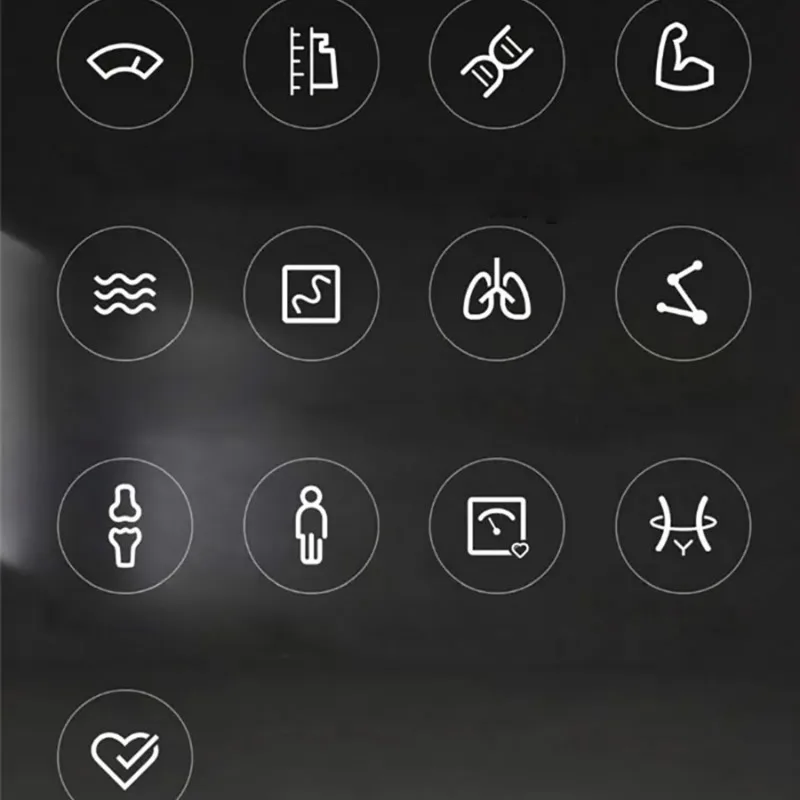porcentaje de grasa corporal, masa muscular, tasa de humedad, tasa de proteína, grado de grasa visceral, metabolismo basal, etc., para entender completamente la salud del cuerpo.