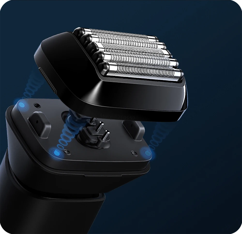 Cabezales de afeitadora flotantes omnidireccionales | Motor de suspensión magnética lineal | Burbujas de cavitación sónica de alta frecuencia