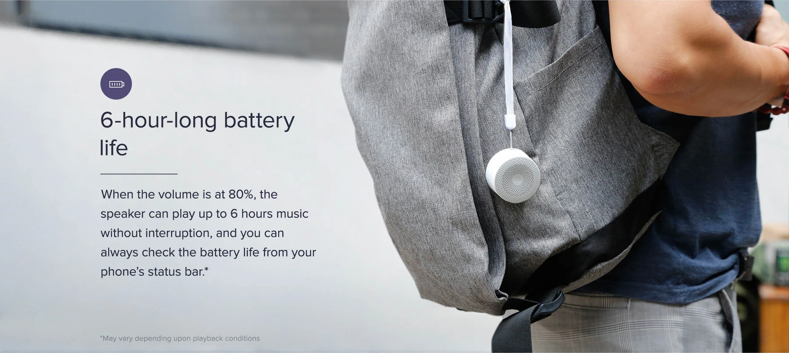 Cuando el volumen es del 80%, el altavoz puede reproducir hasta 6 horas de música sin interrupción, Y siempre puedes comprobar la duración de la batería desde la barra de estado del teléfono.