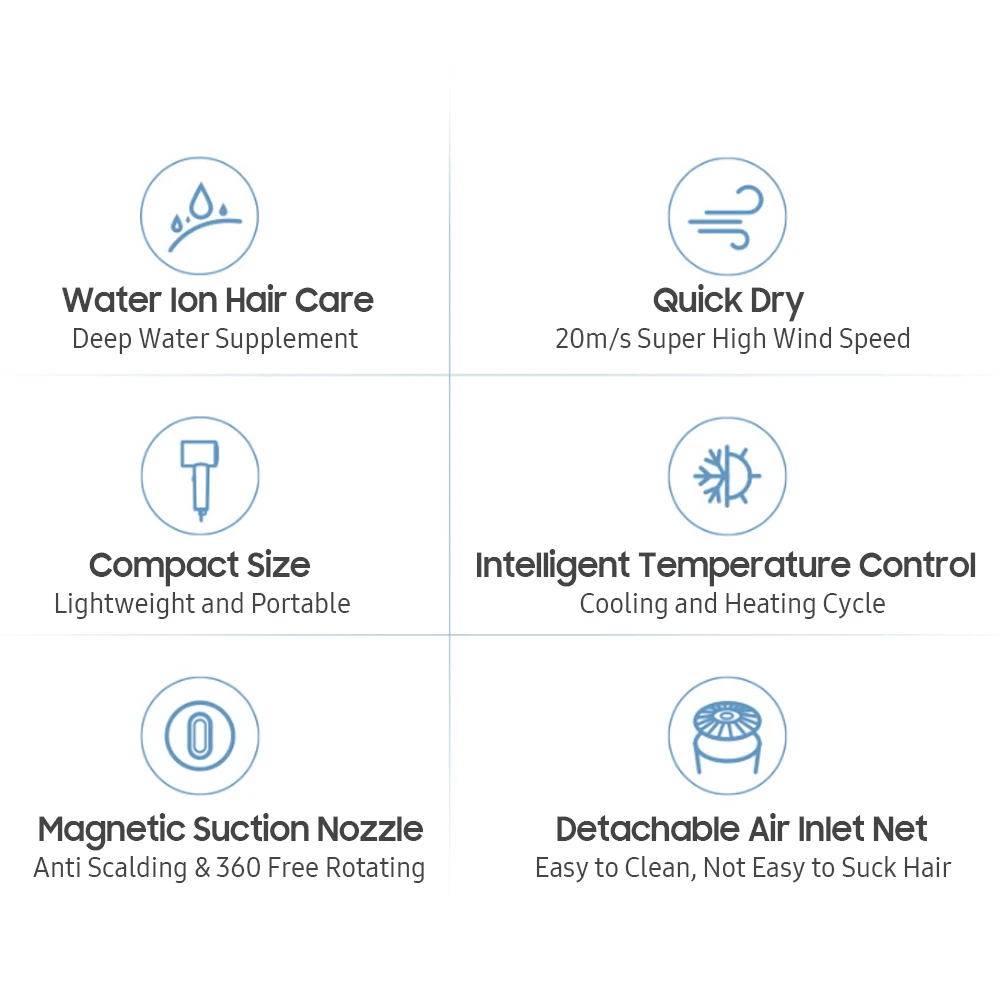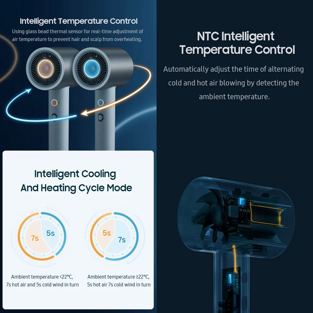 3 temperaturas del viento y 2 velocidades del viento-el control inteligente de temperatura evita el sobrecalentamiento del cabello y el cuero cabelludo,