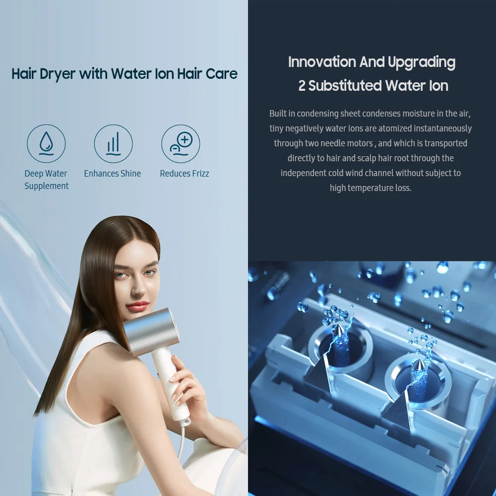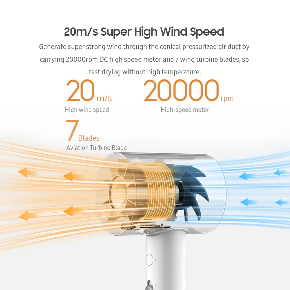 Secador de pelo de iones de agua Xiaomi Mijia H500 1800W secador de pelo ligero portátil con boquilla concentradora