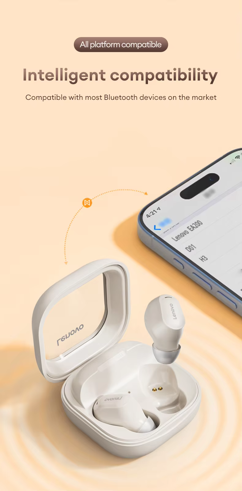 Product description:Lenovo EA200 TWS Headset Wireless bluetooth 5.4 Earphone 10mm Driver Unit AAC HD Call 24H Playback Low Gaming Latency Touch Control In-ear Sports Headphones
