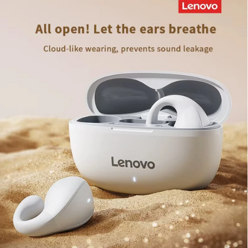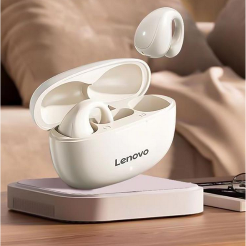 Product description:Lenovo TC3403 open-ear clip-on headphones in black with Bluetooth 5.3 and ENC noise reduction, ensuring discreet comfort and high-quality sound without hearing discomfort.