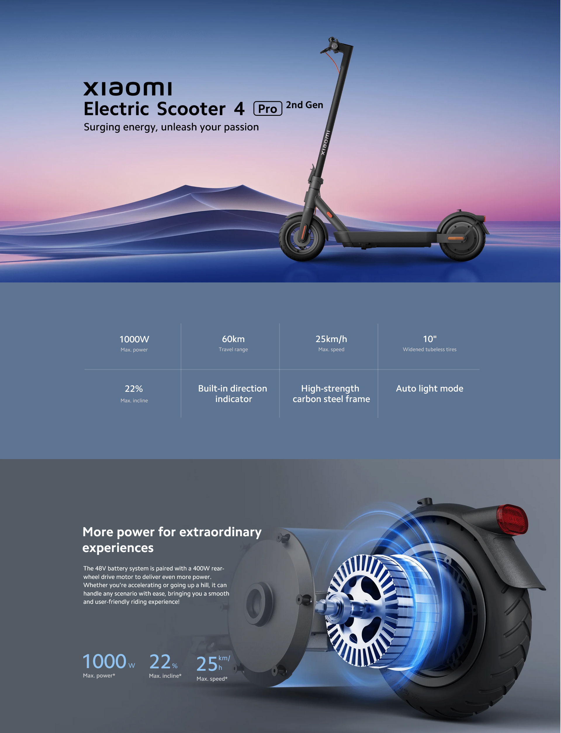 *60mm wide tire surface: The tire width was measured with a vernier caliper and the measured value was not less than the design value, which indicated the requirement was met. The tire width of Xiaomi Electric Scooter 4 Pro (2nd Gen) is 60mm and the tire width of Xiaomi Electric Scooter 4 is 54.1mm. Data is tested by manufacturers.