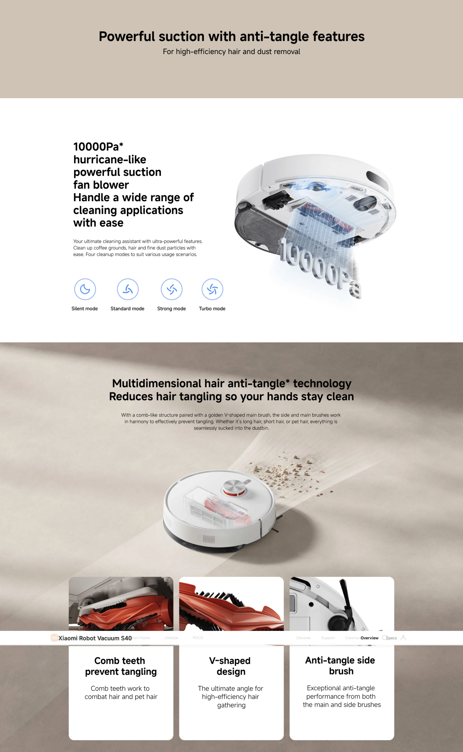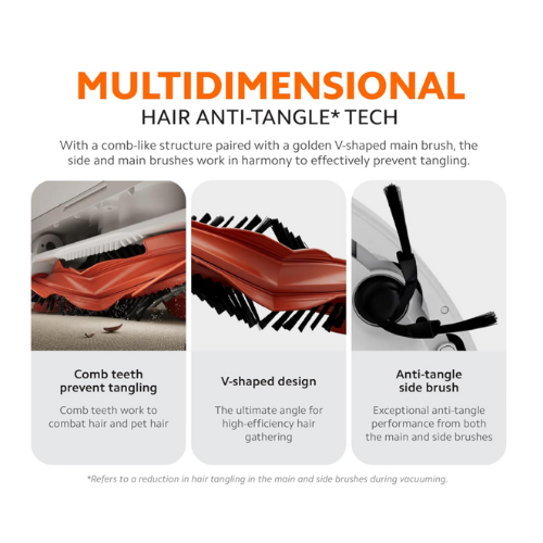 • Multidimensional hair anti-tangle technology & Smart integrated vacuuming and mopping